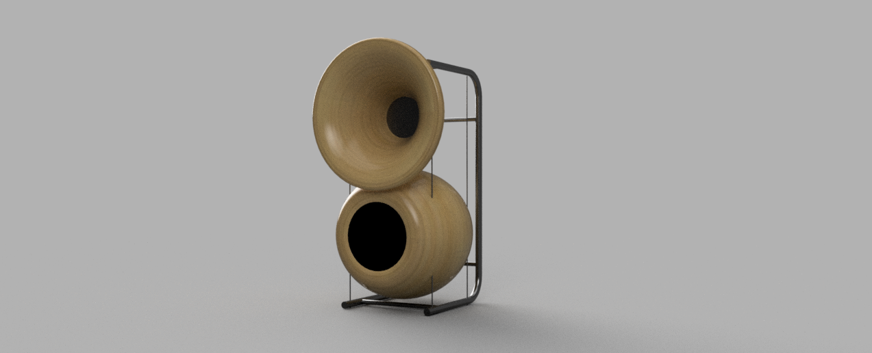 New Lautsprechermanufaktur Heyder horn speakers design study. 70cm / 150Hz Horn and 12″ bass. All birch plywood CNC made. Available soon exclusive at Lautsprechermanufaktur.