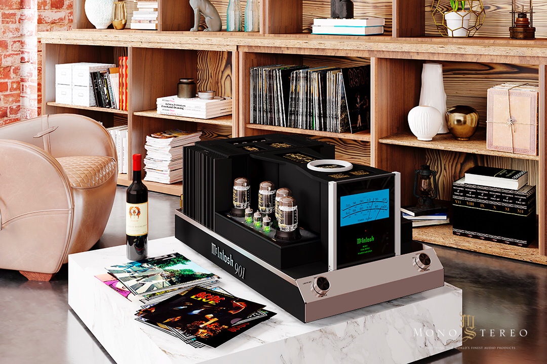 Legendary home audio company McIntosh has been perfecting vacuum tube amplifiers since the 1940s and solid stateamplifiers since the 1960s. Their amplifiers have been used at many historic events including presidential inaugurations and Woodstock, as well as in landmark sound systems like the Grateful Dead’s Wall of Sound and Despacio. From that heritage comes a truly one-of-a-kind home audio amplifier only they could dream of, design and build as the ultimate solution for bi-amping loudspeakers: the new McIntosh MC901 Dual Mono Amplifier. The MC901 is a monoblock amplifier that drives a single speaker. But it is unlike any other monoblock amplifier. What makes the MC901 so unique is that it’s two amplifiers combined into one. Adding to the uniqueness is that each amplifier is of differing design philosophies: the MC901 consists of a 300 Wattvacuum tube amplifier attached to a 600 Watt solid state amplifier on one unified chassis.