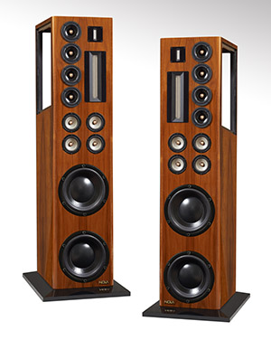 The four new exotic 4½-inch midrange drivers are operated in a short line source open dipole array. These new midrange transducers employ massive Alnico ring magnets and solid copper gold-plated phase plugs for outstanding dynamics and greatest possible clarity from 400 Hz to 1000 Hz.