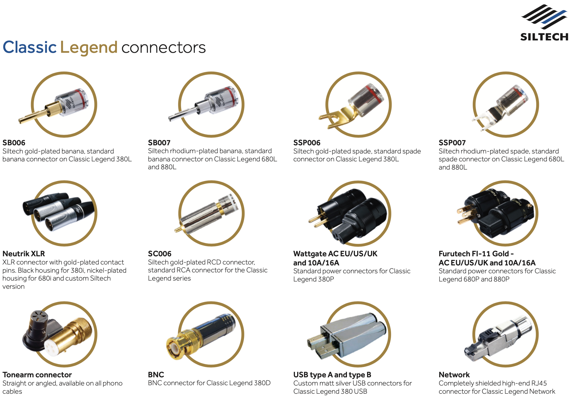 Classic Legend speaker cables deliver a startlingly open and neutral performance which helps the loudspeaker to properly do its job, and lets the listener focus on the beauty of the music itself. Siltech’s legendary tightly controlled yet propulsive bass sound is there in all its glory.
