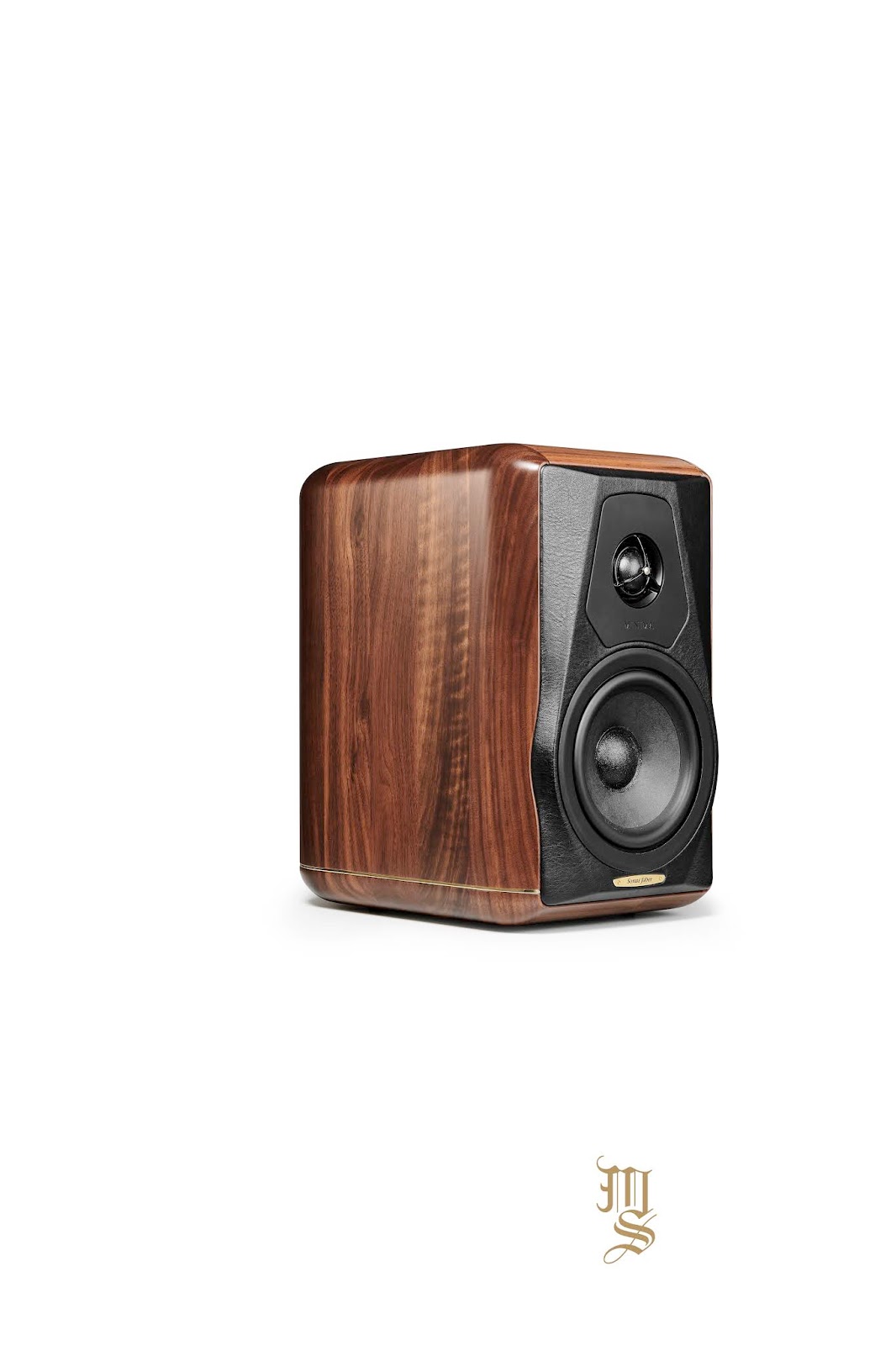 The compact, solid walnut wood of the cabinet adds to the speaker’s sound quality, resulting in a