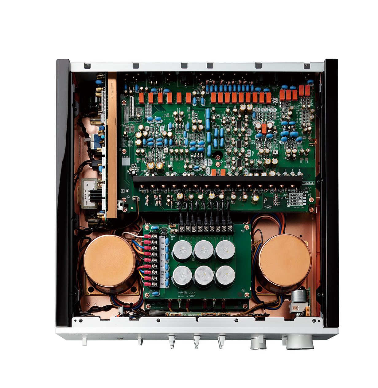 Low magnetic leakage lowers adverse impact on the audio signal. Following detailed research based on trial listening, the power transformer was enclosed in a copper-plated case to suppress magnetic flux and vibration. This also assists in minimising the influence of flux in the phono circuit.