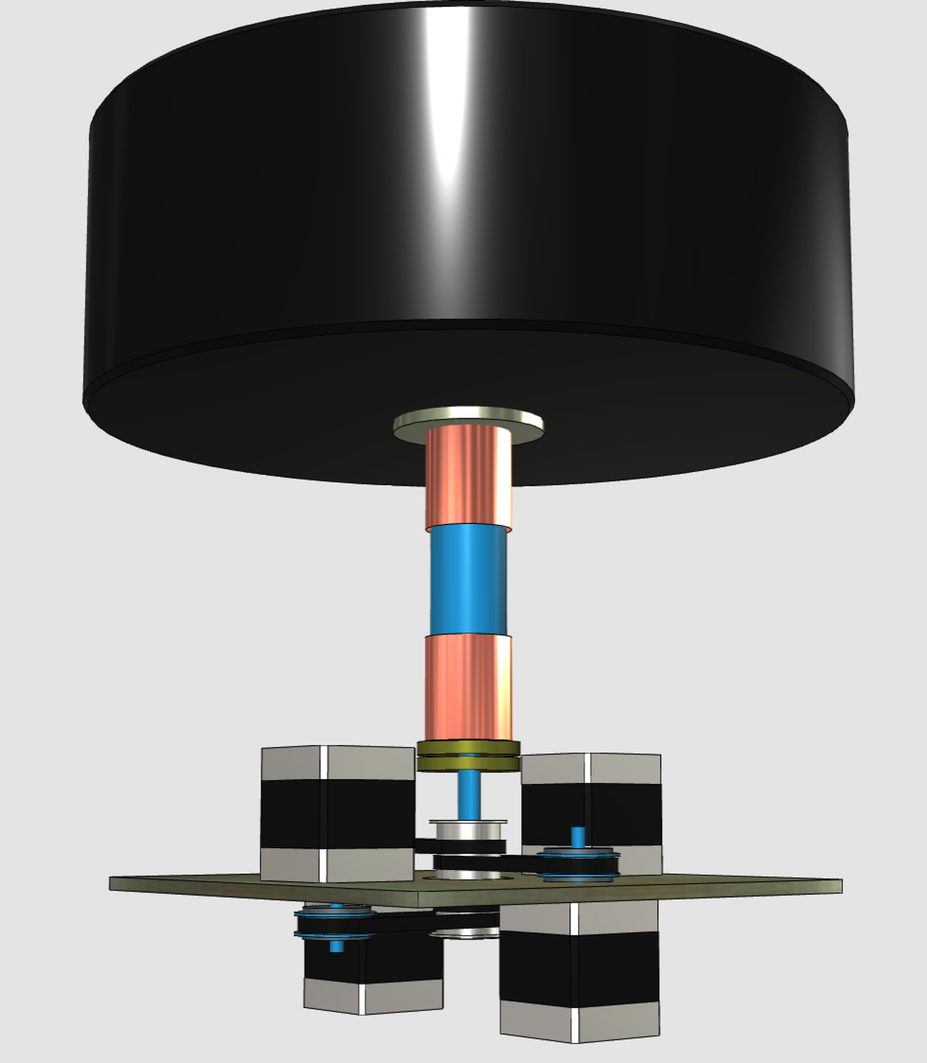 - 4 small super quiet stepper motors drive the main shaft