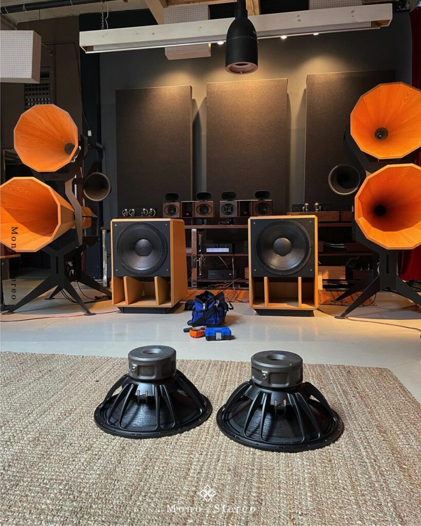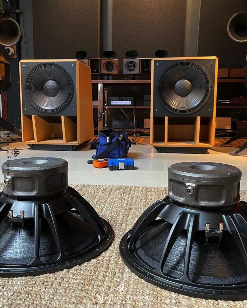Oswalds Mill Audio writes: “Our new field coil woofer for the Imperia bass horn system, the RD121 driver. One of the biggest field coil drivers ever made, this massive beast is now playing in our flagship Dumbo studio. These drivers took about 6 years to create, cast by 3D printed sand molds at our friend James O’Neils place in Richmond VA, OK Foundry. Rich Drysdale helped design the field coil motor structure, these drivers are really a work of art, too bad you can’t see them inside the Imperia enclosures.