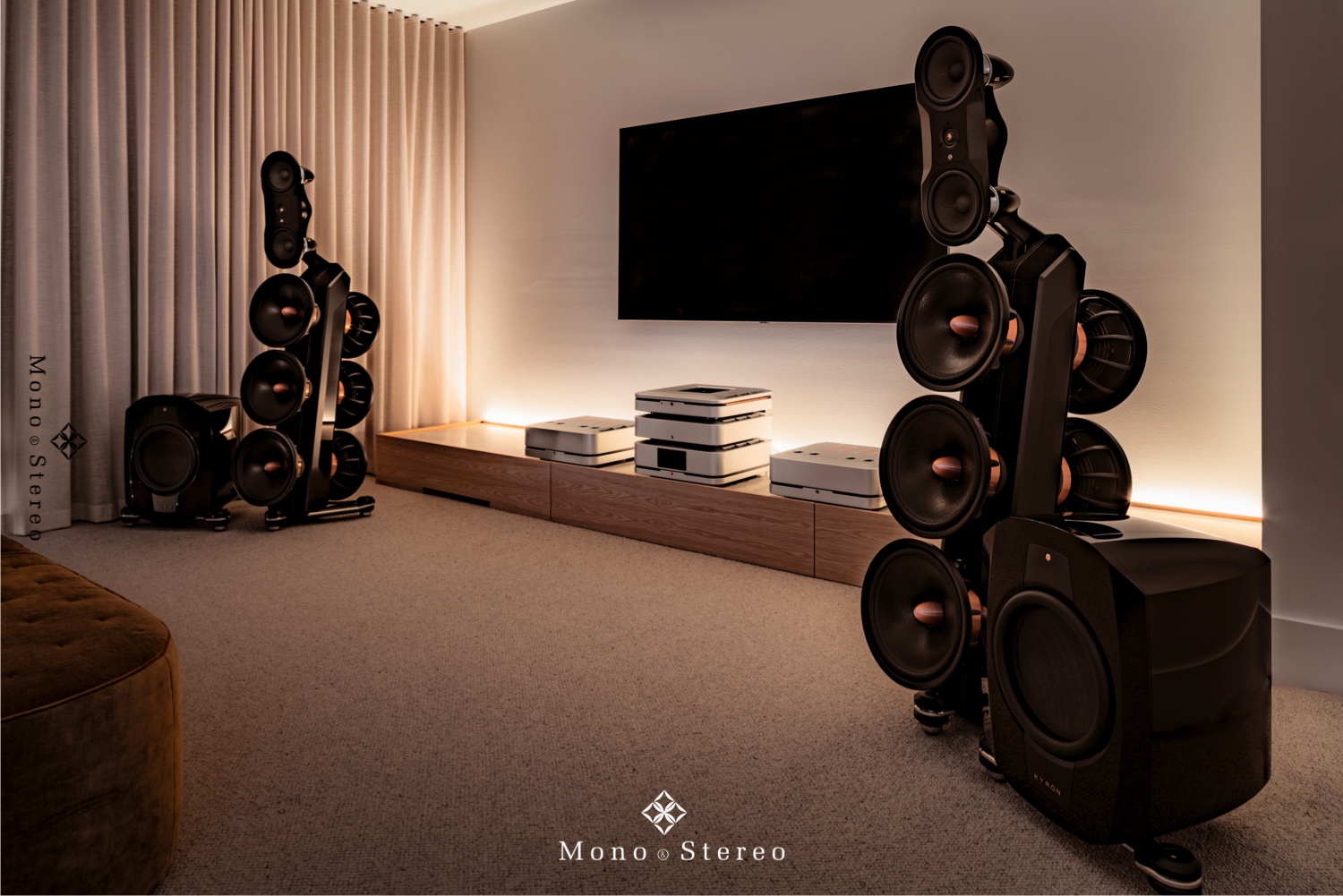 A recent client installation of the Kyron Audio Gaia speakers with matching Kyron amplifiers and control units. Photos – Steven Wade Photos