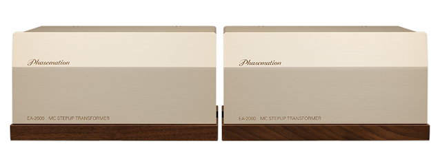 Phasemation EA-2000, the latest flagship, multi-chassis tube LCR non-feedback phono preamplifier. This completely monaural 6 unit preamp combines EA-2000T, MC step-up transformer that is specially tuned based on the T-2000, newly design EA-2000EQ tube type LCR equalizer abiding Phasemation own winding coils and other high-quality sound components, as well as EA-2000PS, developed based on EA-1000 power supply.