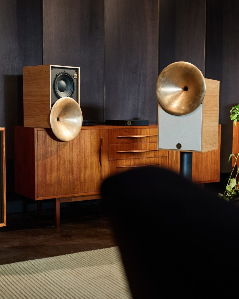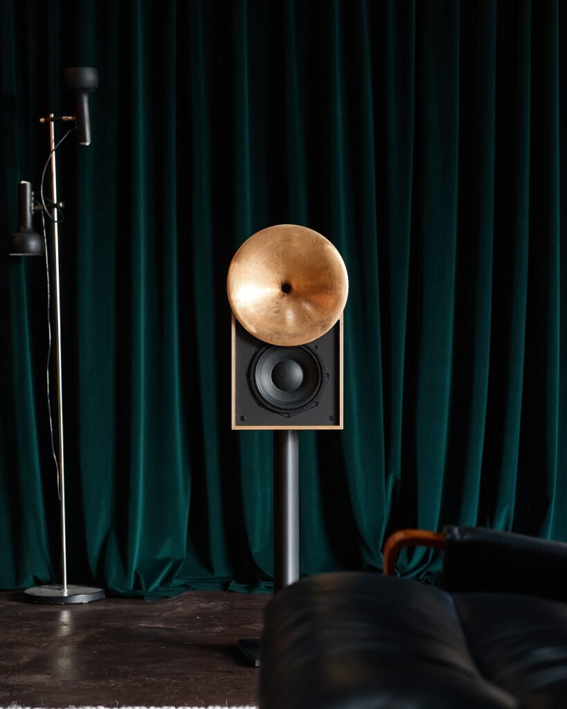 By allowing a large circular cast bronze waveguide to extend beyond the traditional constraints of the cabinet, Pitt & Giblin Flare achieves tonal consistency and output capability that replicates the feel of our much larger loudspeakers in an approachable and unique form.
