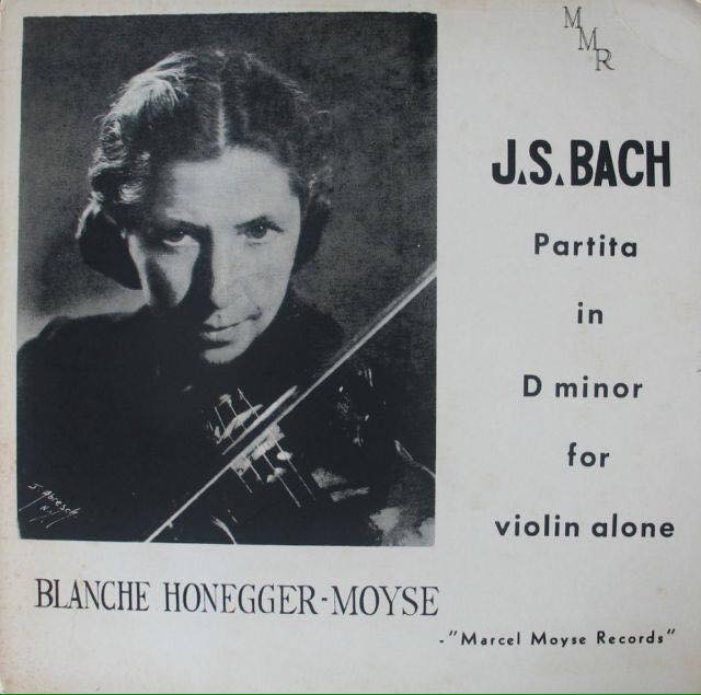 She married the pianist and flutist Louis Moyse and, with Moyse’s father, flutist Marcel Moyse, formed the award-winning Moyse Trio. Early made in US on MMR (Marcel Moyse Records) KO8P Blue Private Mono Label, 33rpm, 12inch LP. Program: J.S. Bach Partita in D Minor for unaccompanied violin. Blanche Honegger-Moyse, solo violin. -Saulo Zuccello