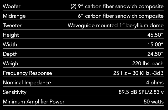 “Immediately apparent is the potent combination of our new waveguide mounted beryllium tweeter and our latest generation of 6 inch midrange and twin 9 inch carbon fiber sandwich composite bass drivers. This, in conjunction with an entirely redesigned crossover, has allowed us to essentially create a completely new loudspeaker. The Avior II’s sound is even more transparent and resolved than the original, and is characterized by a rich, textural liquidity and authoritative dynamic fidelity throughout the entire frequency range.