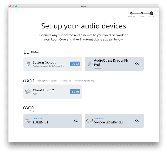 Each of those devices has different capabilities in terms of format support, sample rate capabilities, and streaming protocols, so setting them up correctly hasn’t always been easy. To take the mystery out of this process, we’ve built a database of every audio product we’ve ever tested and documented every feature, capability, and idiosyncrasy. Roon now uses that database to identify and automatically configure itself to work optimally with all those devices when they’re detected on your network or USB bus.
