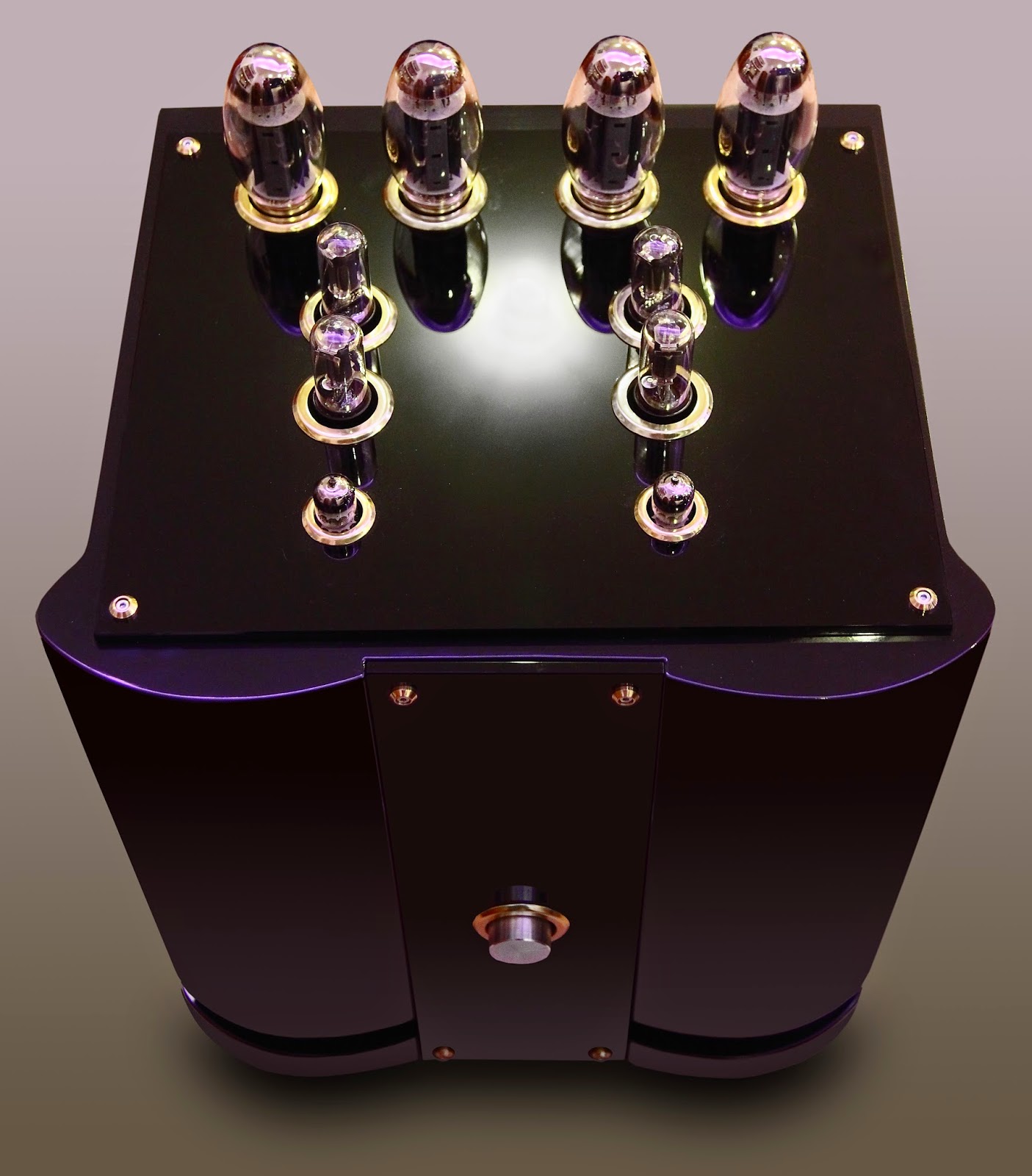 Armour-like beautiful sculptural plywood chassis (much the same as White Knight and 300B SE have) is painstakingly decorated by high gloss black lacquer and (amplifier’s front and top) 10-mm deep blue sapphire glass sheets.