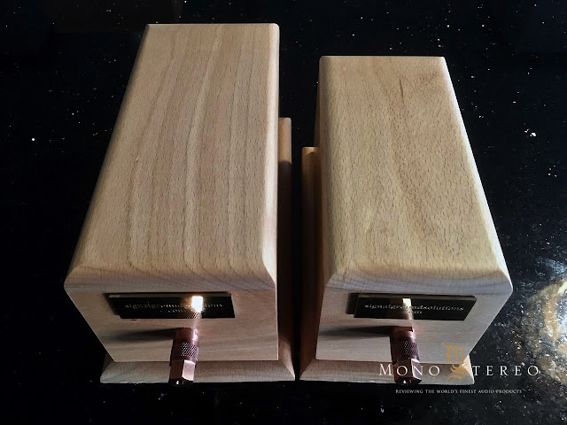 This is a signature version of the SGS 1 with a larger/heavier solid beech cabinet, Purist Silver and Gold by Mundorf Cardas in the pure copper binding post or rhodium over silver.