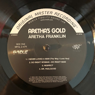 If ever there was a Greatest Hits package earning my RESPECT, this has got to be it. Unless you are a devoted die-hard Aretha fan, you’ll probably find this compilation of her earliest Atlantic material fits the bill just fine–the only single I felt missing was the funky “Rock Steady” from 1971, recorded nearly two years after this initial release. In effect, between her first signing to the legendary label in early-1967 until barely a year and a half later, the “Queen of Soul” delivered in spades: “I Never Loved a Man (The Way I Love You)”, “Respect”, Dr. Feelgood”, “(You Make Me Feel Like) A Natural Woman”, “Chain of Fools”, “Think”, “You Send Me”, “I Say a Little Prayer”; they are all here–in chronological order–and that’s just about half of the fourteen memorable classics assembled. Backed by Cissy Houston, and sisters Carolyn and Erma, Aretha is already shining at her peak performance. Engineered by Fame Studio’s Rick Hall in Muscle Shoals, Alabama, and Atlantic’s Tom Dowd in New York, the incredible sound captured and mixed on the studio’s vintage Ampex 8-track is breathtakingly vivid, with punch, presence, and energetic force. Contrary to Phil Spector’s “Wall of Sound” awash in reverb and purposely monophonic, here the sound is intimate, closely palpable, warm, dry, dynamic, and sharply hard-panned for maximum musical clarity–more akin to Roy DuNann’s sonic presentation for Contemporary Records in jazz. Of course this revelatory level of sonic bliss was only lately realized by MoFi’s magnificent double 45 rpm release, remastered and cut by ‘engineer-Kings’ Krieg Wunderlich and Rob LoVerde, and plated and pressed by RTI in California. I don’t have the original US pressing but there is no doubt whatsoever that it cannot compete with the MoFi’s multiple strengths and technical advantages. Simply put, and strictly confined to this version, this is the best Greatest Hits release you can get for music and sound combined.