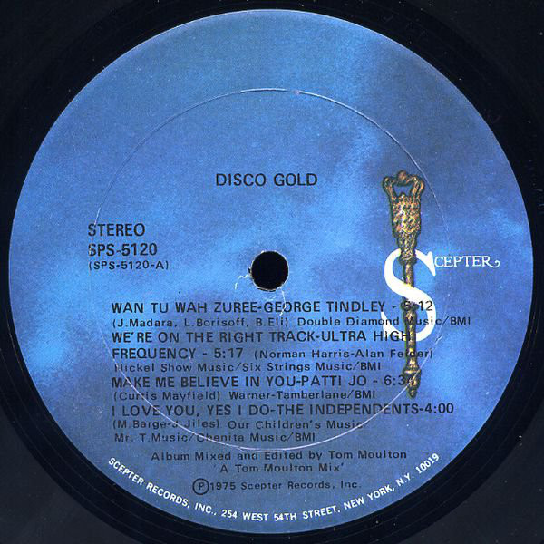 Between 1970 and 1974, several songs soon found favor among the nascent discothèque scene, sounding towards some sort of musical hybrid–mostly mixing soul, funk, and Philly Sound in different degrees, thus creating proto-disco underground hits. Disco Gold gathers eight such songs on one album, licensed under the steering Scepter label. The selection is particularly palpitating because of the scarcity of many of the tracks that oftentimes only existed in small run seven-inch singles. In addition, these are longer versions–sometimes twice the original single length–remixed or re-edited by maestro Tom Moulton. The three that stand out most are the Norman Harris-penned and produced “We’re on the Right Track” by Ultra High Frequency dating from 1973, along with two incredible penned-productions from Curtis Mayfield–”Make Me Believe in You”, obviously borrowing from The Temptations’ “Papa Was a Rolling Stone”, and “Ain’t No Love Lost”, both by protégé Patti Jo, from 1973 and 1972 respectively. Moulton’s golden touch takes it to another level, making these extended versions, seemlessly combining vocal and instrumental parts, far superior to the shorter singles. Keep in mind that the tracks are kept separate and not intermixed like in a club deejay set, and all are worthy of inclusion. Mastered by José Rodriguez, the sound is uniformly well balanced throughout both sides with good but not outstanding bass, surprising treble transparency for the genre, and a wide soundstage.