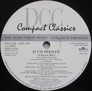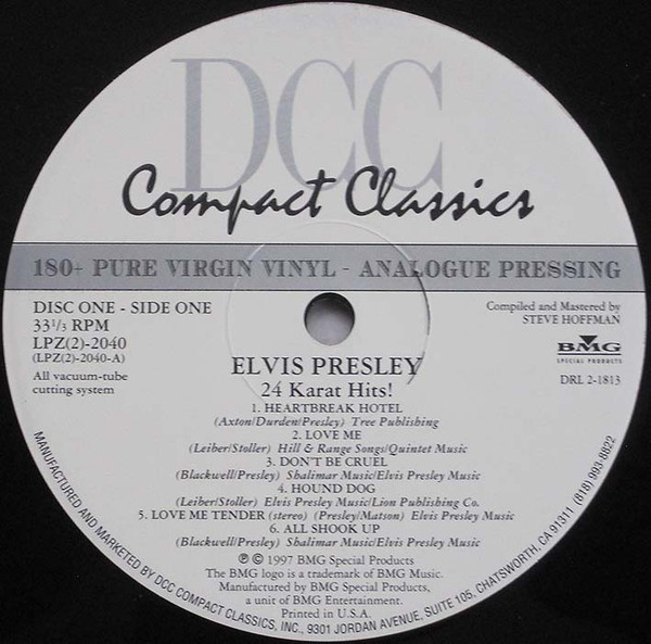 Let’s kick off things with the “King of Rock and Roll”. Reunited mostly in chronological order on one double-LP–and spanning his RCA Victor period from January 1956 with “Heartbreak Hotel” through “Suspicious Minds” from August 1969–24 Karat Hits! is the perfect Elvis compilation if one wishes only the top hit singles delivered in excellent sound. Remastered and cut by the DCC duo of Steve Hoffman and Kevin Gray, they went to great lengths to use the true mono, two, and three-track tapes to transfer to the master-lacquer instead of cutting from a second or third generation assembly work tape which would have saved time and trouble for them, though therefore paying the sonic price in transparency and presence. Many music lovers may be astonished to hear how well recorded the King can sound when well transferred and played on a good audio rig. Now you would expect that his voice would come out well and naturally it does but what really surprises is the rendering of the back vocal quartet The Jordanaires–almost sounding spooky such is their realism. Along with guitarist Scotty Moore and bassist Bill Black, the trio formed The Blue Moon Boys in 1954 at Sam Phillips’ Sun Studios, soon joined by drummer D.J. Fontana, making rock and roll history. Renowned engineer Bill Porter and Thorne Nogar share most of the recording credits. Severall studios listed including RCA-Victor Studio B, Nashville, TN; RCA-Victor East 24th Street Studio, NYC; Radio Recorders Studio B, Hollywood, CA; American Sound Studio, Memphis, TN, and MGM Scoring Stage, Culver City, CA. The tonal balance is slightly forward in the upper mids giving good presence but may prove a bit problematic on some systems. I did not hear Analogue Production’s tripple-LP cut at 45 rpm by George Marino to compare with. The faster speed is theoretically superior and should advantage the latter. I don’t know if he remastered it differently than DCC’s earlier release but generally he does a great job, and the forum consensus seems to slightly favor the AP over the DCC for having a bit more bass tonally.