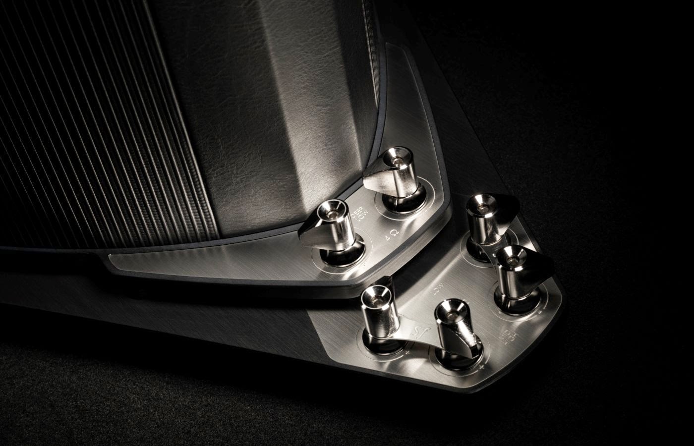 Starting from the beginning, when aluminum was used, the avional nickel-plated arrived with Amati futura. This characteristics aluminum alloy is implemented by two CNC machined avional end-covers on the top and on the bottom of the cabinet and their role is to control and constrain residual resonances of the enclosure walls. This project solution is named Exo-Squeleton and became a permanent feature for all Homage collection speakers and even for Lilium and Aida.
