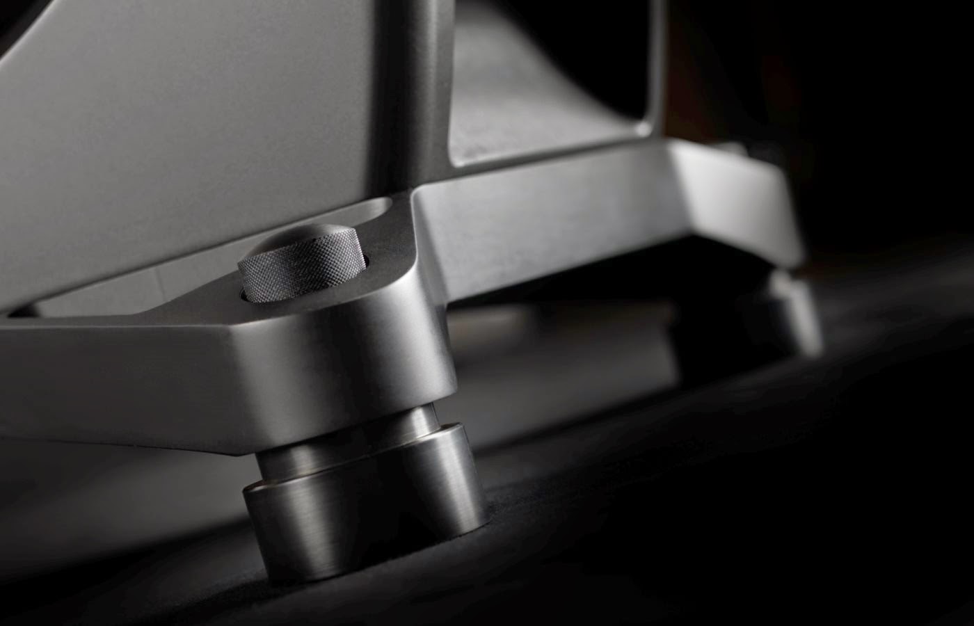 The two lyre-shaped elements (upper and lower) machined from solid Avional blocks have been designed to collect vibrations. The clamshells are connected by compression through the “Anima Legata”, an amagnetic steel alloy shaft and are optimized one by one in traction with a dynamometric device. The “Anima Legata” in the critical nodal point is implemented with a T.M.D. (Tuned Mass Damper); a device that eliminates any residual vibration. The system works through anti-phase oscillation, using kinetic-thermal conversion.