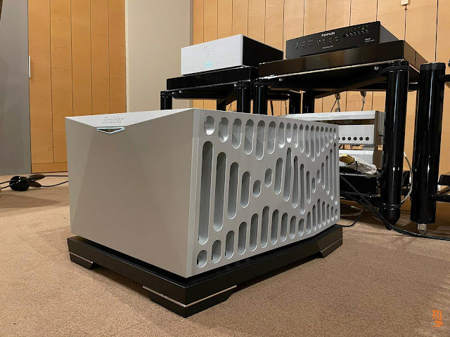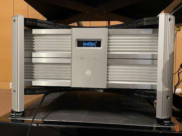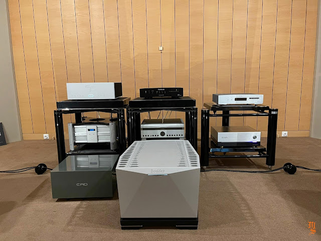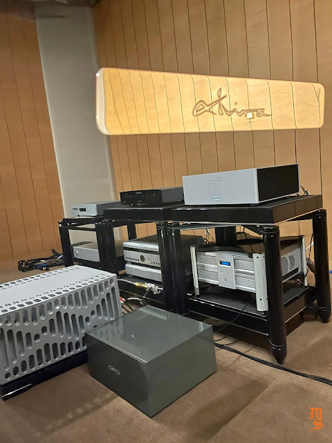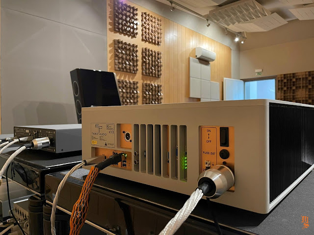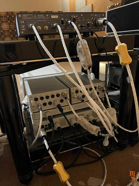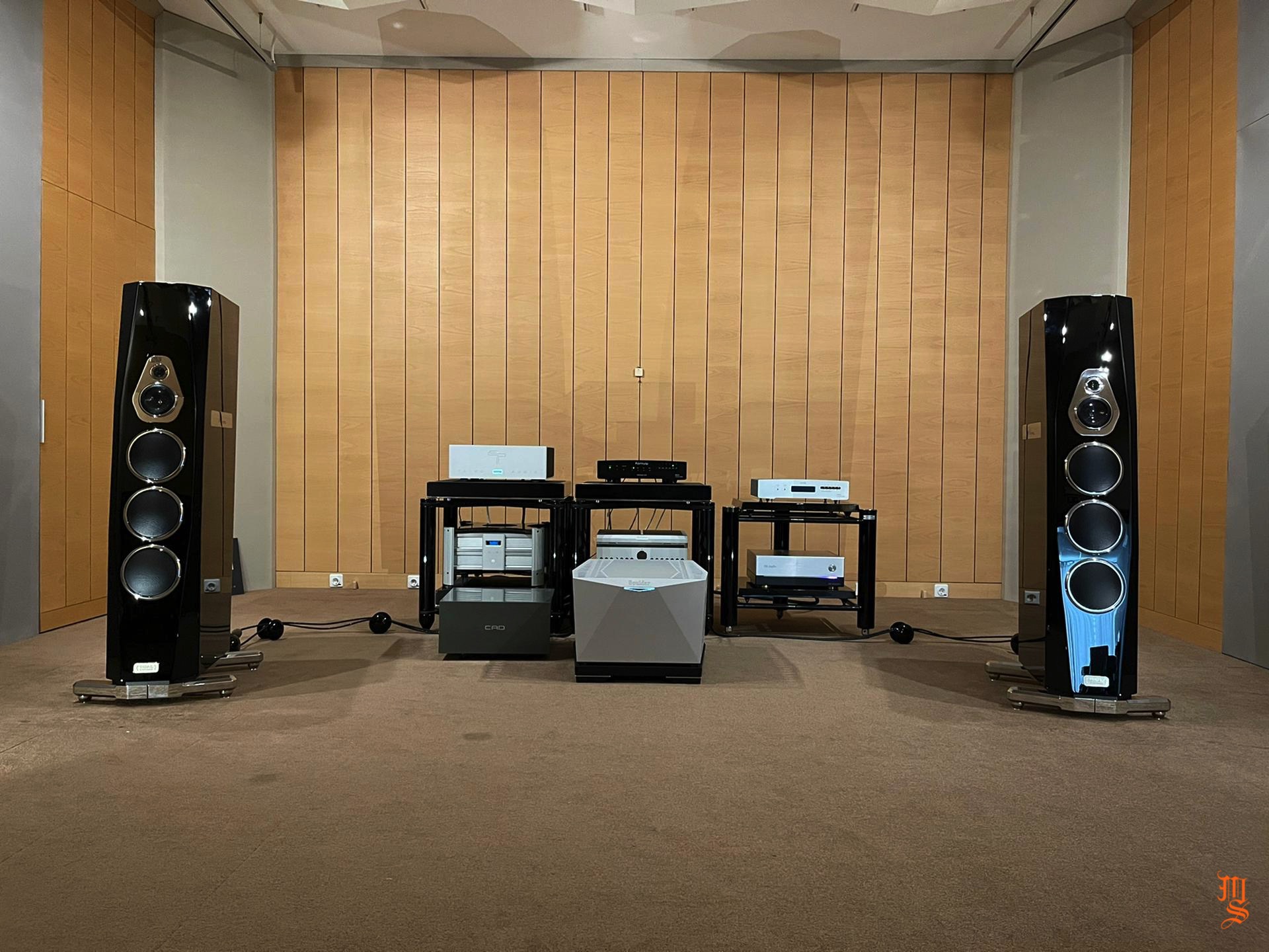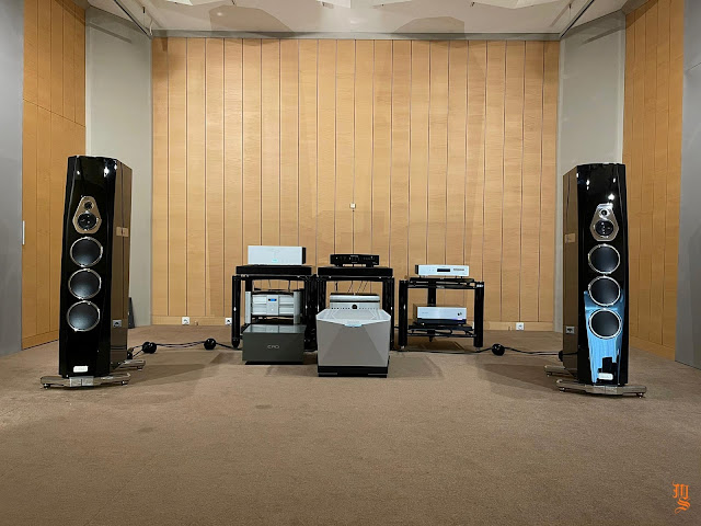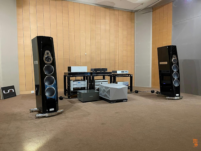 Upper echelon high-end audio system with Tidal Audio Akira speakers partnered with Boulder, Taiko Audio SGM Extreme server, Aqua Acoustic Quality DAC, etc. At Ultimate Audio Elite.