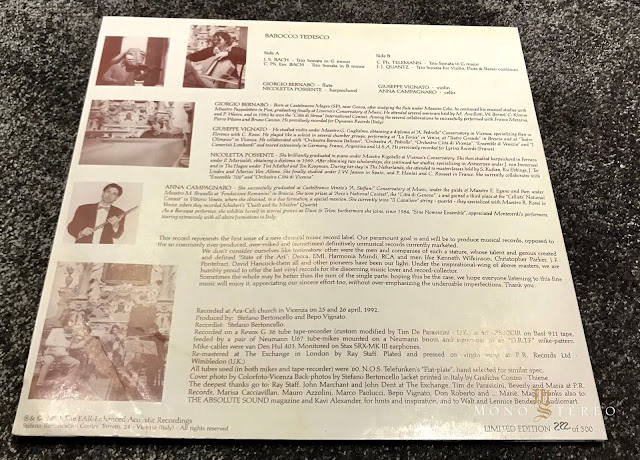 And another analog gem worthy of seek and find! The Barocco Tedesco recorded by our’s one and only Senior Contributing Writer Stefano Bertoncello. Captured on the Revox G 36 tube tape-recored custom modified by Tim De Paravicini. Two Neumann U67 tube-mikes were used as well hand selected ’60 N.O.S. Telefunken Flat-Plate tubes…