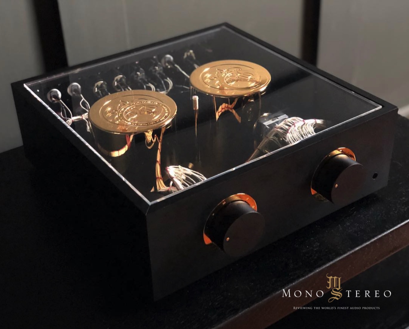 The Bespoke Audio Company beautiful preamplifier with protruding gold plated brass cowls for a customer in Hong Kong. They’ve also updated online configurator, which now includes the new remote handset and finish options.