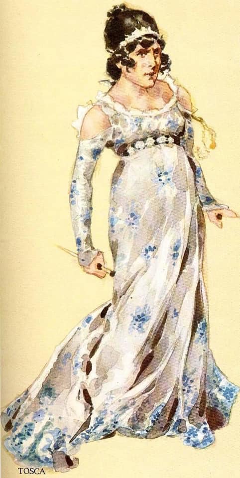 Maria Callas as Floria Tosca in the best Tosca recording: Puccini / Tosca / Callas-Di Stefano-Gobbi- Calabrese-Mercuriali / Victor de Sabata conducting the Alla Scala Orchestra, Milan / GB / HMV-Columbia 33CX 10028/29 Original mono recording from 1953 / 2 Record Set Box plus “Libretto”. The original watercolor of Tosca, designed by Adolf Hohenstein in 1899 for the world première of the opera, on January 14, 1900, at the Teatro Costanzi, Rome.