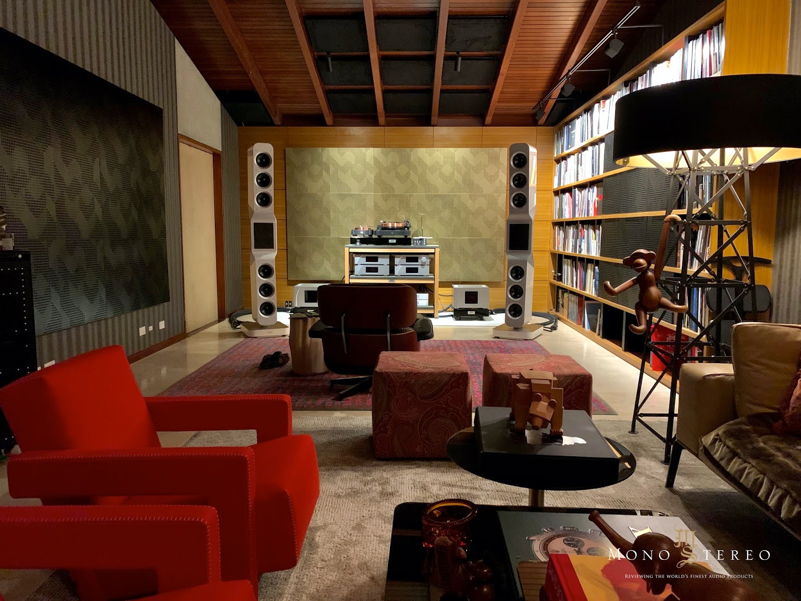 An impressive Bending Wave USA system installation with Gobel Epoque Aeon Reference speakers, CH Precision M1 amps- in vertical bi-amp mode, L1-X-1, P1- X-1. Art Novion Panels, Nordost – Qcore, Qbase, Qx4 power purifier, Qv2,Qk1 and QCore, TW Acustic Table with various arms and cartridges, SRA – Stands, Gobel Lacorde Reference Power cords/Speaker wires/Balanced Interconnects.