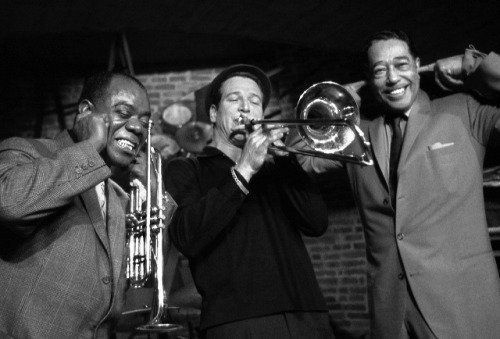 THE MOMENT! October 9, 2017 Matej Isak What a moment! Duke Ellington, Louis Armstrong and Paul Newman (1960) in Paris. Photo was taken by one and only Herman Leonard.