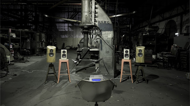 What a photo! Atlas Gouverneur’s (The Speaker Project) speakers made in an 1880’s locomotive workshop. “Outer speakers consist of Scanspeak 15w/8530 woofer paired with a SB 29 tweeter. Inner speakers consist of SB Acoustics SB13PFC25 woofer paired with a SB26ST tweeter.”