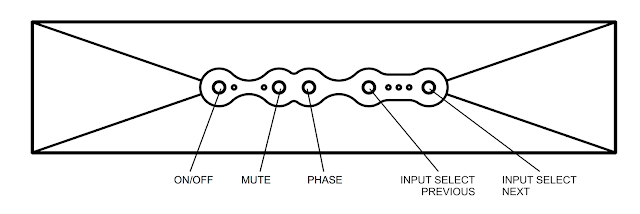 On the front panel you’ll find five buttons; on/off, phase, left and right input selection and mute.