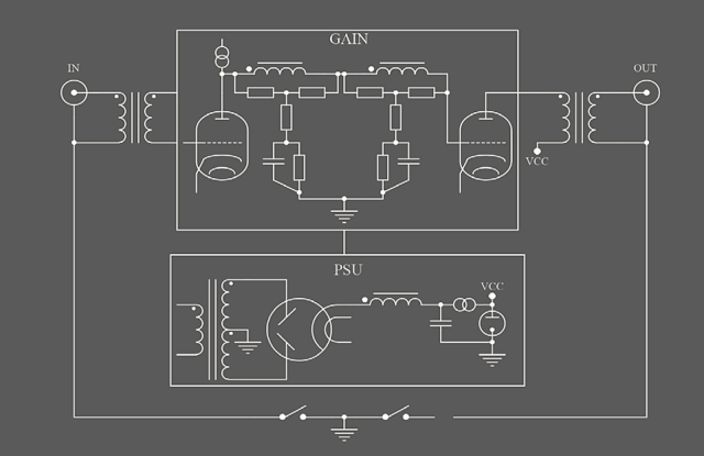 Thrax Audio pushed this design by implementing a cascode input and a cathode follower feeding an LCR network and another cathode follower for the output minimizing the the usually minimum of six tube stages down to the four.