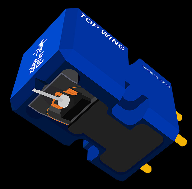 “A phono cartridge converts vibration energy, generated by the stylus tracing the sound grooves, into electric signals. This vibration produces secondary (harmonic) vibration, reviving high-frequency components recorded in the master that could not be recorded with LPs. This physical phenomenon cannot be reproduced digitally but can be expressed as natural analog sounds. Even today, this sound quality is the major reason for the continued popularity of analog LPs. Nevertheless, TOP WING was concerned, because when the sound quality of CDs and LPs made from the same master tape was compared, the CD was superior in terms of soundstage reproducibility. We wondered whether superior soundstage reproducibility would ever be technically possible with LPs and whether perhaps there was something in the production process preventing success. This questioning led to our discovery that existing cartridges were not picking up all sound information necessary for sound-field reproduction.”Which brings us to the Top Wing’s coreless straight-flux system…