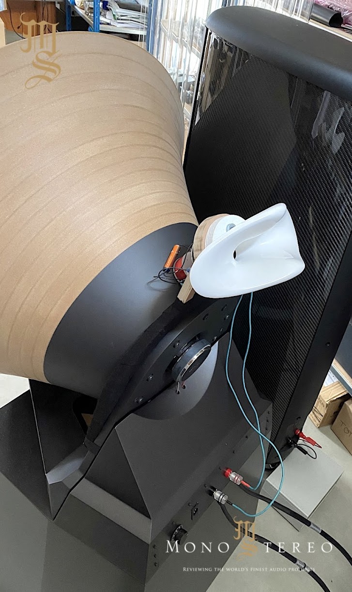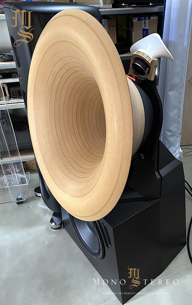 A quick look at the prototype of a rear horn tweeter for the Totaldac d150 anniversary horn loudspeakers. The resulting sonic advantage is very promising because the horn already radiated mid frequencies backward and the bass already radiated some energy backward. With the specially made horn tweeter, you get a full spectrum radiating to the rear, which gives an even better feeling of space and life.