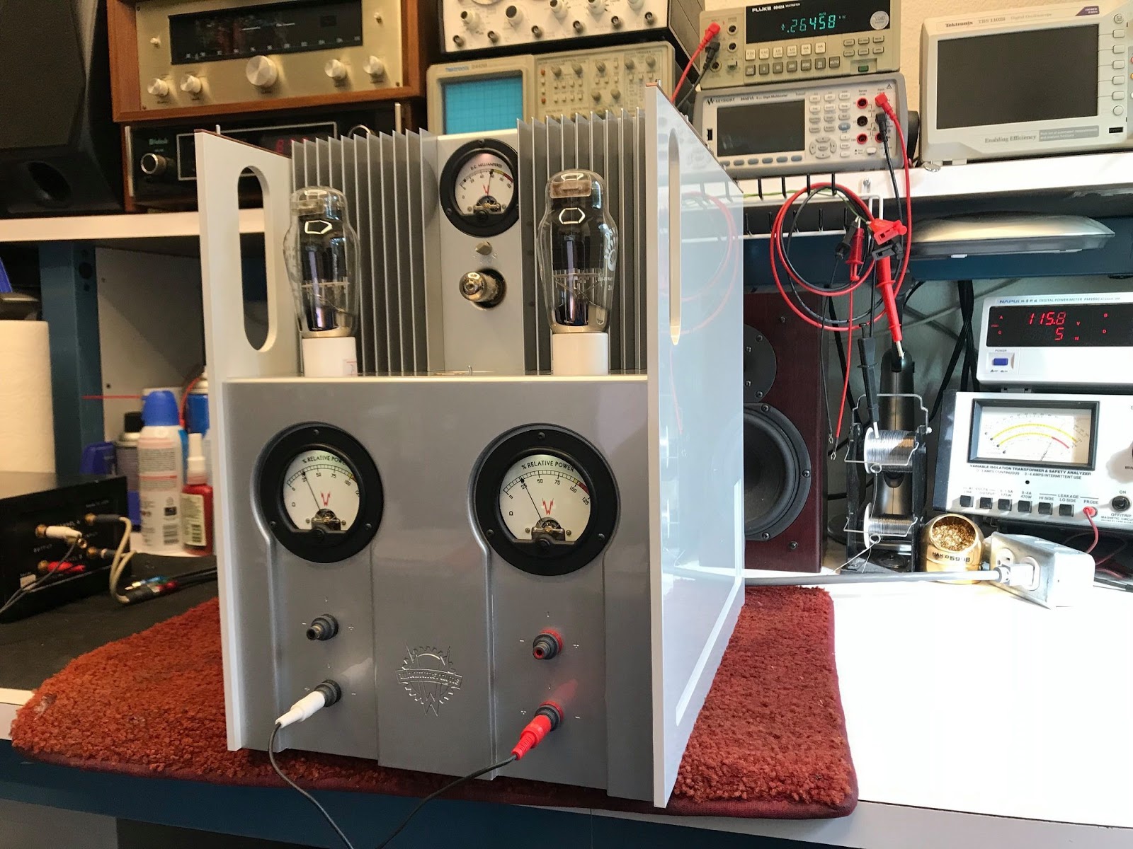 “Getting closer to ship, burning in the special order Truth 2A3 amplifier. This is my all out “legacy”product. “Nano” crystalline core output transformers! (bandwidth to 180 KHz) I will put its top curved plate on tomorrow. Power and all certifications tests will be done tomorrow.. The “gauntlet” that’s where I try and break her. Once through that I hand print a Certificate of Performance and affix my signature”