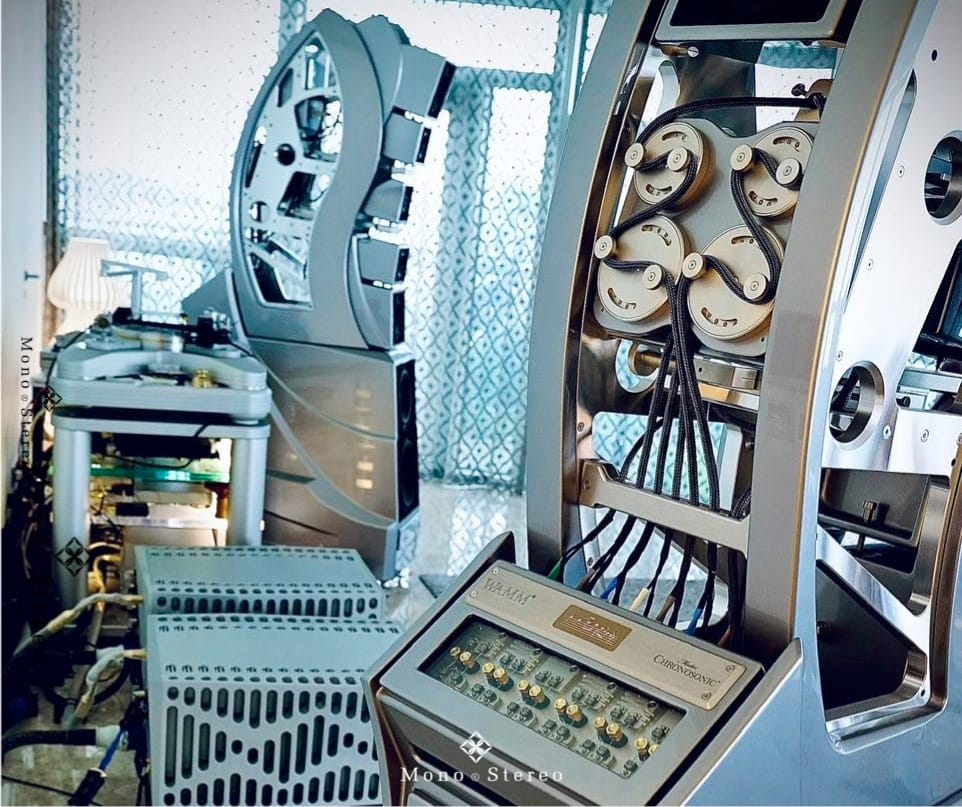A series of detailed photos of Wilson Audio WAMM Master Chronosonic loudspeakers with a variety of high-end components such as FM Acoustics, Boulder, Telos Audio, Trinity Audio, etc. Via our friend AudiophileLance.