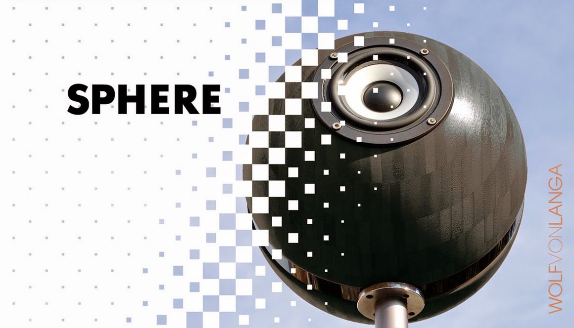 Wolf von Langa ‘Sphere’. All new ball stereo speaker system. Wolf von Langa speakers for everyone. Sphere Loudspeaker System will cost 500 EUR (units / piece) with frequency response of 68 to 22.000 Hz (red = axis; blue = 30 ° off axis). 89 dB / 1W / 1m. 2 x 8 Ohms.